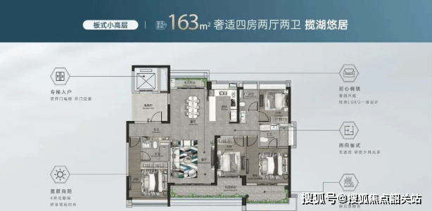 7栋、8栋:17层小高层,2梯2户,138-163㎡四房,专梯入户,主推现房;