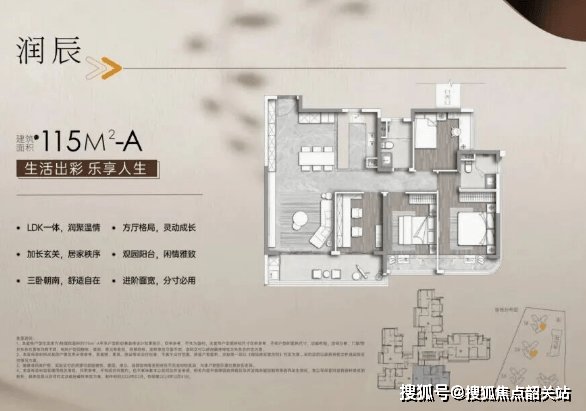 115㎡4房:总价520万起,南北通透,主卧套房设计,独立衣帽间+卫生间,适合二胎家庭;