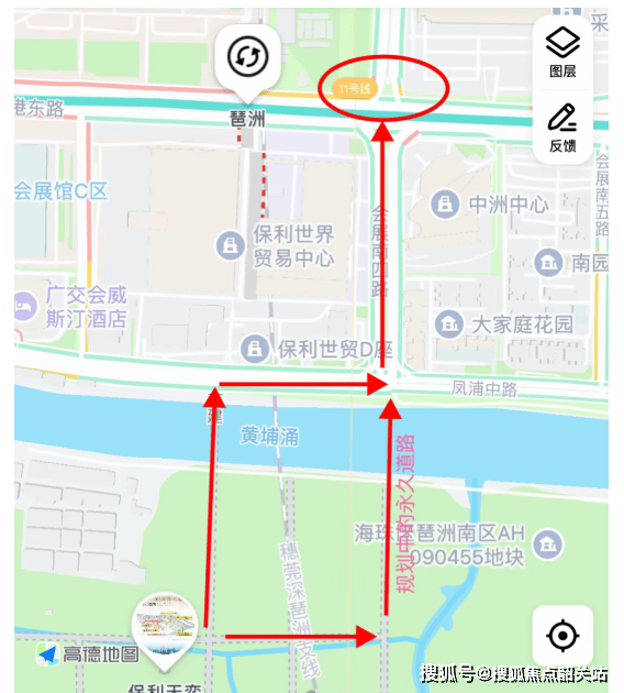 交通方面,通过临时搭建的便桥,从项目步行至地铁8/11号线交汇处的琶洲站约8 - 900米,耗时约10分钟,距离相对适中。后续若走建成后的永久道路,距离会稍远。不过,上个月黄埔涌临时便桥通车后,前往地铁站无需绕路。地块周边规划7条永久道路,计划2026年四季度建成,其中会展东路至关重要,它可直达广交会展馆,串联新港东路、阅江路等,届时开车去琶洲仅4公里,20分钟内可抵达,去珠江新城约10公里,半小时左右车程。目前虽存在一些交通上的过渡情况,但未来交通规划完善后,自驾与地铁出行都将更加便捷。