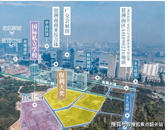 保利天奕坐落于琶洲南板块,地处琶洲会展中心南边,西侧1公里与琶洲南TOD相邻,北邻黄埔涌,南邻新滘东路,西南边是国际私立学校与赤沙村。该地块由保利发展于去年10月以总价59亿拿下,可售楼面价约4.7万,包含三块宅地,是琶洲片区难得的低密纯宅地,容积率仅2.5,且为纯板楼设计。早期拿地时周边基础设施薄弱,如今黄埔涌搭设的桥已通车,项目与琶洲中区连接更为便捷,东侧九年制学校也官宣由广州市第五中学领衔办学。项目预计首开1、2、8、9栋,推出建面120 - 190平户型,部分楼栋已获预售证,预计月底前开放营销中心,备受市场关注。其所处地段紧邻琶洲数字经济试验区,具有承接高端客群的潜力。