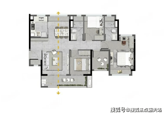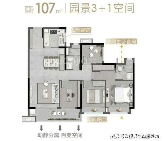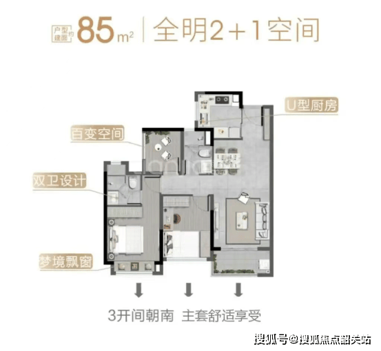 项目全系主打全南向高拓户型,覆盖刚需三房到进阶改善四房全梯度产品,户型设计贴合佛山本地人居习惯,格局方正、采光通透、空间利用率极高,适配家庭全周期居住升级需求。85㎡入门三房采用经典竖厅LDKB一体化格局,三开间朝南搭配全飘窗拓展设计,主卧独立卫浴保障私密居家体验,以刚需小面积实现三房两卫实用格局,完美适配年轻首置家庭。101至107㎡爆款四房做到四开间朝南,搭配六点三米双开间景观阳台,全屋动静分区清晰,通风采光条件优越,可轻松承载二胎、三胎多人口家庭居住需求。115㎡改善四房采用南北双阳台通透设计,空气对流干爽舒适,主卧打造套间+独立衣帽间奢华配置,空间尺度感拉满,能够满足一步到位的刚改居住需求。全系户型实用性突出,得房率领先同板块竞品,居家空间无多余浪费。