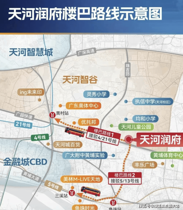 4. 华润置地·天河润府周边交通虽目前依赖接驳,但通过多种方式组合,仍能实现轻松穿梭湾区各处。项目配套楼巴,两条路线分别直达奥体中心接驳地铁4/21号线黄村站,以及鱼珠-三溪商圈接驳地铁5/13号线鱼珠站,3站可达金融城,7站到珠江新城。自驾便捷,靠近广园快速路、黄埔大道等城市主干道,非高峰时段20分钟左右可到金融城、琶洲、珠江新城等重要商圈,通过这些主干道还能快速连接华南快速等,通达广州各区及湾区城市。未来配建的公交站场和茅岗路北延段拓宽工程完工后,公共交通将更便利,无论是市内通勤还是湾区出行,都能找到合适的方式。