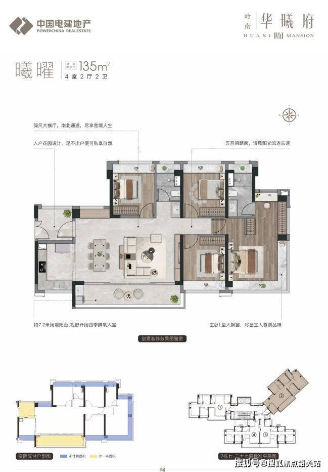 中国电建・岭南华曦府建筑面积约 15.8 万㎡,占地面积约 4.5 万㎡,容积率约 2.6,绿化率约 30%。项目由 9 栋楼组成,梯户比为 2 梯 4 户,总户数 1048 户,停车位 1048 席 。首推建面约 98 - 118 - 135㎡生态华宅,交房标准为精装交付。