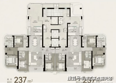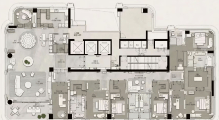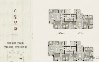 9号楼(37层)聚焦411㎡与436㎡五房加一房户型,3T2户,客餐厅空间达8×15米或10×12.5米,动静分区清晰,另赠10.7㎡共享平台。