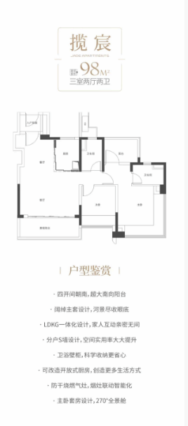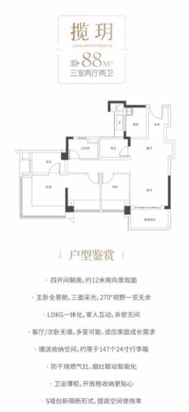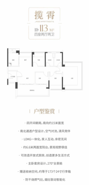 黄埔润府提供建筑面积约为88-113平方米的精装三房/四房户型,所有户型均采用四开间朝南的设计理念,结合创新收纳交标,实现了高效储物和270°观景功能,LDKG一体化设计更是提升了空间利用率和居住舒适度。
