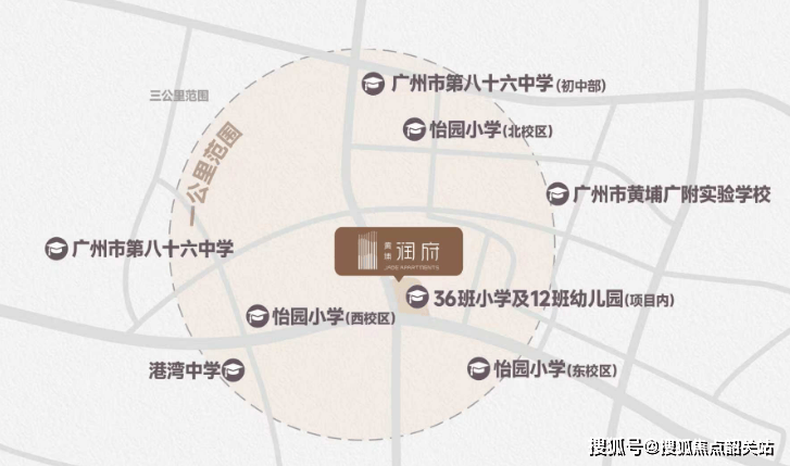黄埔润府周边教育资源丰富,项目内配建了36班小学及12班幼儿园,并且两公里范围内还拥有黄埔广附实验学校、广州市第八十六中学等优质学府,形成了一个黄金教育链路。