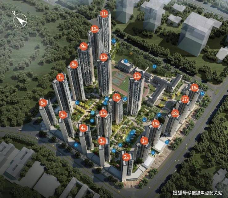 建筑采用点式布局排布,减少楼栋数量,提高楼间距,保证每一户的通风采光;