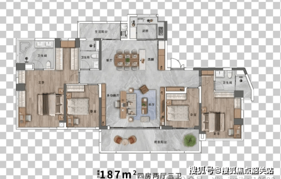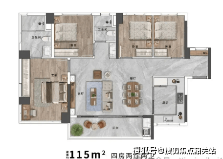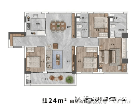 主力户型涵盖97㎡三房、115–124㎡四房及139㎡以上大平层。其中,建面约97㎡的三房尤为抢眼,实现四开间朝南,三个卧室全部南向,搭配约6.3米超长阳台,采光与通风效果极佳,堪称小户型中的“空间魔术师”。115–124㎡四房采用横厅设计,公共区域开阔通透,适合二胎或多代同住家庭。139㎡以上大户型则配备双阳台,兼顾景观视野与功能分区。