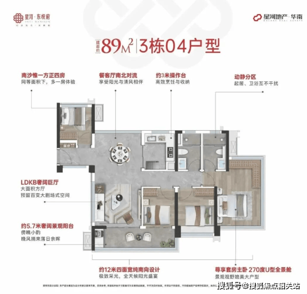 项目主打建面约89-138㎡全四房至五房产品,实用率最高达128%,远超市场平均水平。尤其89㎡户型,竟实现南北对流+四开间朝南+四房两厅两卫,这在南沙乃至整个广州都属罕见。相当于用小户型的价格,享受110㎡以上的空间体验。