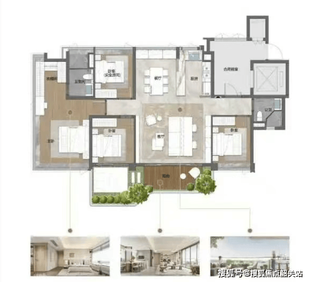 首层叠院(建面约115㎡):这是全盘使用率最高的“王炸”户型。四房两卫的格局,满足了多代同堂的居住需求。最令人震撼的是,它赠送了约170㎡的双花园。想象一下,前庭种花,后院品茶,孩子在草地上奔跑,老人在藤椅上晒太阳。这不仅仅是房子,这是一个私家的空中庭院,是都市中的桃花源。