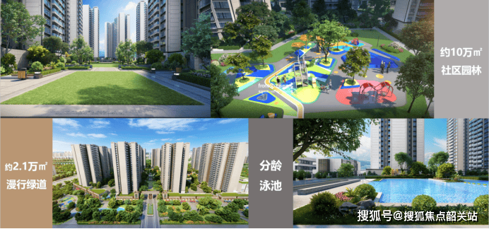 园林设计:项目规划有约10万方园林,约2.1万方漫行绿道五大园林模块,满足全龄段需求。