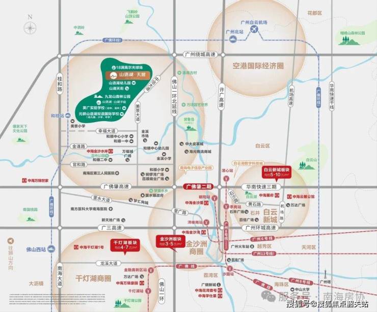 交通方面,项目主要依赖公路网络,通过佛山一环、广佛肇高速等可连接广佛多个区域。资料显示,车程约20-30分钟可达广州白云、佛山千灯湖等地。规划中的广佛环线西段或将为未来出行提供更多选择。小区内设有公交总站,同时有第三方运营接驳巴士至广州地铁站。
