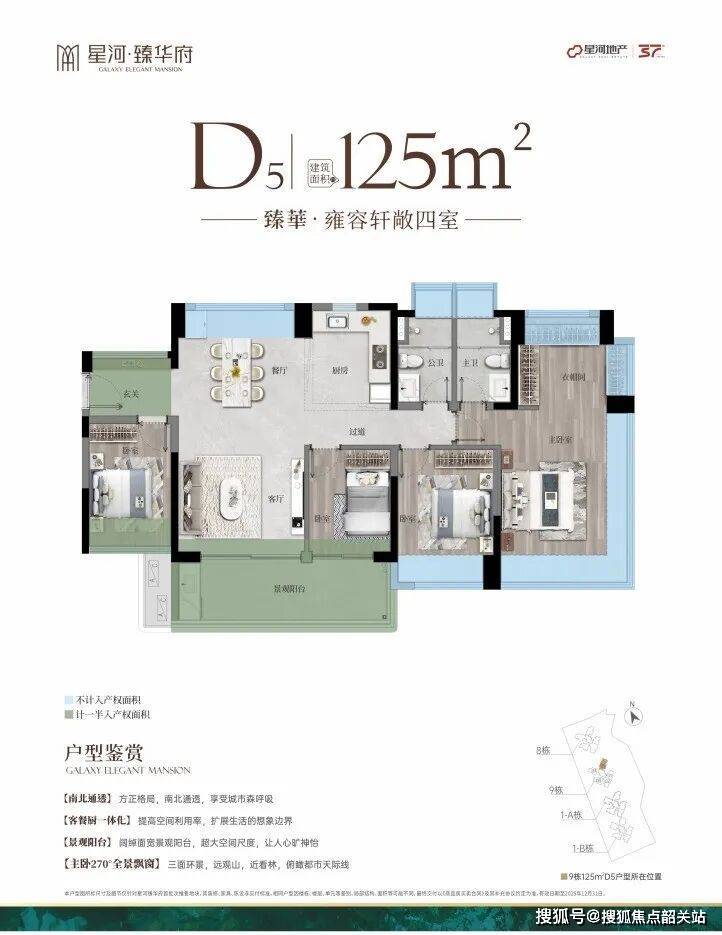 星河臻华府推出的户型设计注重实用性和舒适度,建面约为85-125平方米的三到四房,使用率接近100%。主卧带270°飘窗的设计,使得房间采光效果极佳,视野开阔。此外,部分户型还可通过巧妙设计拓展使用空间,进一步提高了居住的舒适度。无论是自住还是投资,这些户型都具有很高的竞争力,能够满足不同客户的需求。