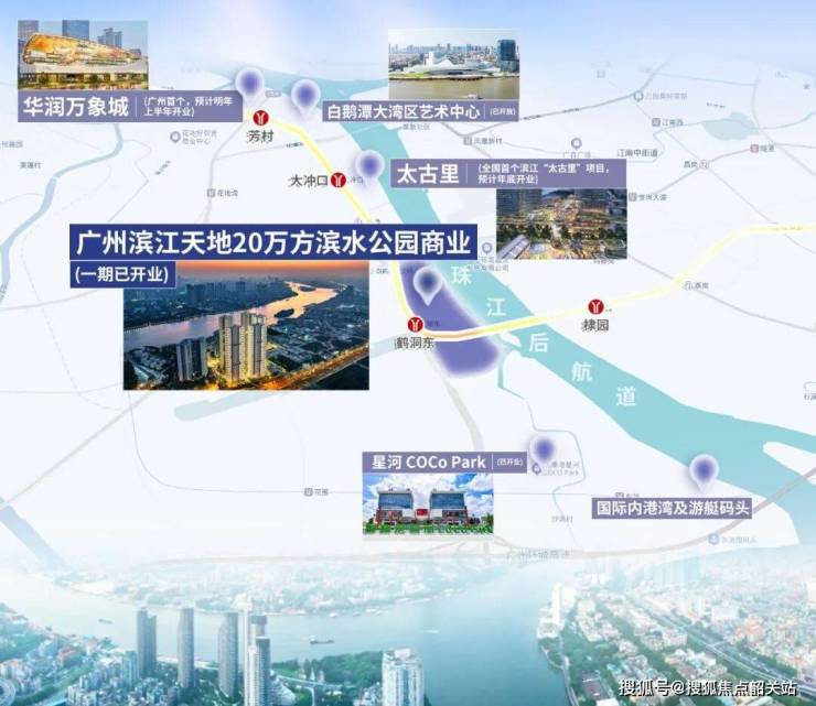 项目自带约20万平方米滨水公园商业,涵盖公园滨水商街、策展商业和生态购物中心,已引入米其林推荐餐厅“四季小馆”、全国首家雅诗阁优选服务公寓等高端品牌。未来,这里将成为广州潮流新坐标和广府文化首游目的地。