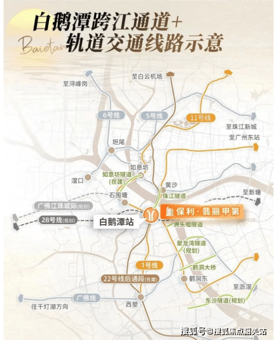 A2:项目与地铁1号线芳村站(未来改名白鹅潭站)仅约200米,该站点为四轨交汇枢纽,汇聚1号线、11号线、22号线、28号线四条高能级地铁线。此外,周边还规划有多条过江隧道,立体化交通网络完善,无论是日常通勤还是跨城出行都十分便捷。