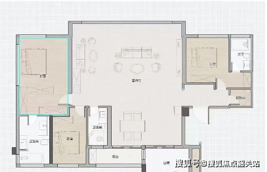 其中,133㎡大平层采用四叶草+横厅设计,这一设计在广州市场上独一无二。客厅无需打通,就能实现约7.4米大宽厅,空间感媲美170㎡大平层,无论是日常居住还是亲友聚会,都能拥有充足的活动空间。四叶草布局则让各个房间相互独立,保证了居住的私密性,同时最大化提升了空间利用率。