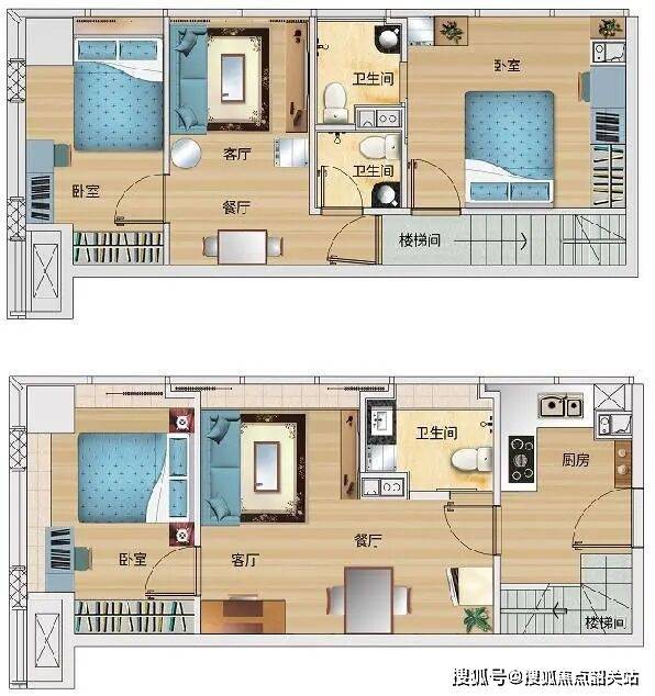 其中最受欢迎的一款是约56㎡的三钥匙公寓。这种户型直接做成了三户独立分租结构,每一户都有独立的钥匙、水电表和出入口,相当于把一套房拆成了三个小单元。业主买一套就能实现三份租金收益,现金流相对更稳健,特别受到追求高租金回报的投资客青睐。