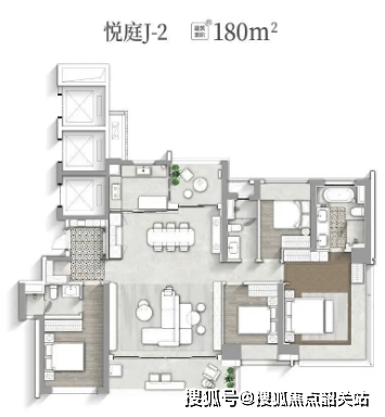 主力户型集中在110至180平方米之间,均为四房设计,强调实用性和空间延展性。以180㎡户型为例,LDK(客厅+餐厅+厨房)一体化公共区域开间达6米,若打通相邻多功能房,横向尺度可拓展至约9米。三个卧室均朝向中心园林,配约80厘米深飘窗(实际可利用约50厘米),既增加采光,也提升了室内使用面积。灵活的空间结构支持从三房到五房的调整,适合不同家庭阶段的需求。