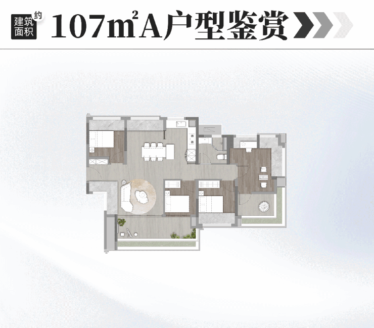 2. 建面约107㎡四房两厅两卫