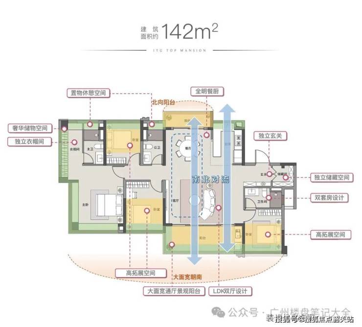 【142㎡南北通透四房】广州主城芯,一步到位住园景四房,南北通透对流,宽敞通透尺度!