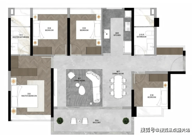 小区绿化率达到了30%,拥有南北两个集中式中央园林组团,其中包括3600平方米的全龄段主题乐园、2700平方米的双阳光草坪和720米健康环氧跑道。四大主题分区——心旅启点入口展示区、酒店式休闲度假区、全龄段主题活动区和植说心语组团花园区,为居民提供了丰富的户外活动空间。