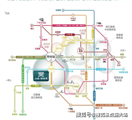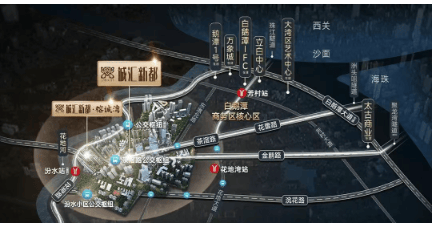 从地铁口花地湾出来,步行到项目约 2 公里,距离较远,步行不太现实。未来该板块暂无地铁规划,目前出行主要依靠楼下公交接驳 1 号线或自驾。不过,楼下的茶滘总站有 106 路公交,3 站可到芳村站,对在越秀上班的人群较为友好。此外,项目距离远期规划的 25 号线汾水站约 600 米,建成后一个站就能到花地湾,将大大缩短通行时间。