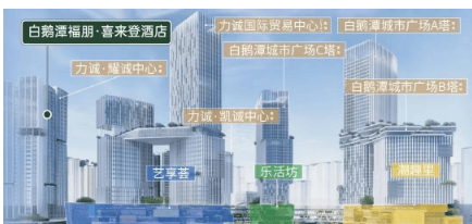目前周边配套相对欠缺,但小区配建 4700㎡商业,整个茶滘大城规划约 60 万㎡商业配套,包括 5 座 100m 以上综合性地标用于总部办公,3 座星级品牌酒店(荔湾首家万豪 —— 白鹅潭福朋・喜来登酒店已进驻),3 座主题购物公园(乐活坊、艺享荟、潮趣里),以及约 1.7km 岭南风情滨水商业街,并融入亲水平台、景观栈道、空中连廊等,提供沉浸式商娱消费体验。同时,已有 23 家品牌商家意向签约,未来商业氛围将逐渐浓厚。