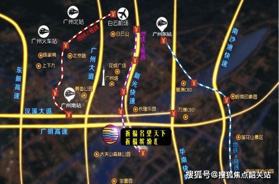 祈福半山臻品的交通优势显著,地铁22号线市广路站已开通,1站可到广州南站,2站即可到达珠江新城(快线换乘)。未来随着南延段的建成(规划中),将串联深圳、东莞等城市,进一步拓展居民的出行范围。自驾出行也十分便捷,通过市广路、新光快速和广台高速等快速路可以迅速到达广州各区域。
