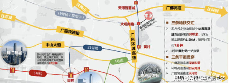 答:交通便利。距离地铁21号线大观南路站约800米,步行可达。周边高快速路网密集,自驾出行高效,可快速通达珠江新城、金融城、科学城。