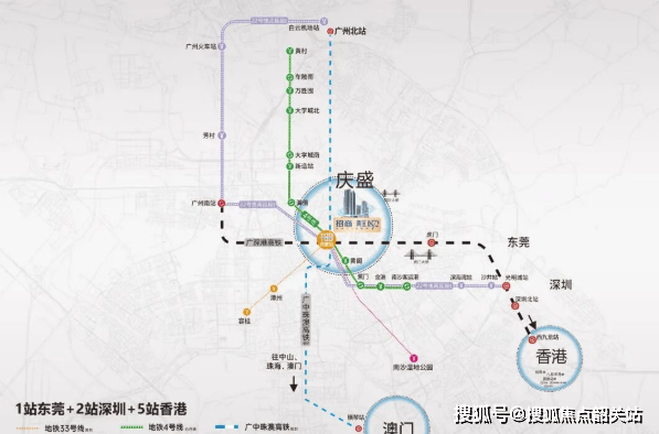 项目距离庆盛站约1.5公里,该站集成了高铁站与地铁站,包括已开通的地铁4号线和22号线(首段已开通),未来还有规划中的地铁31号线和33号线。广深港高铁和广中珠澳高铁(规划中)也为居民提供了直达港澳及珠三角其他城市的便利条件。