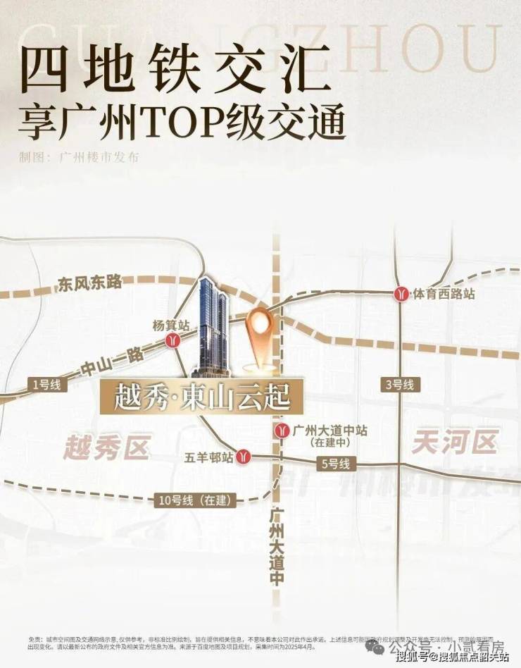 越秀东山云起的交通配套十分完善,轨道交通与自驾路网相互补充,形成了多维立体的交通体系,确保业主出行高效便捷,无论是日常通勤还是周末出游,都能轻松应对。轨道交通方面,项目周边有多条地铁线路环绕,直线距离地铁5号线杨箕站约700米,步行8分钟即可抵达,5号线贯穿广州南北,北起滘口站,南至文冲站,可快速换乘1、2、3号线,通达天河客运站、广州火车站、珠江新城等核心枢纽,30分钟内可覆盖广州多个核心区域。