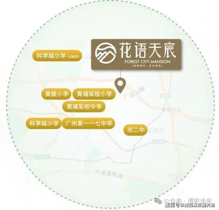 没有配建小学、初中,需要统筹周边入读,也就是摇号直线距离约800米即是黄埔军校中小学和科学城实验中/小学(原黄陂小学),小学大概率是在两所之间任选,都不会差。
