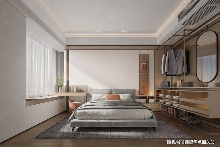套房主卧 | 主人的尊崇私享领地大开间,主套(含飘窗)南北通透,独立衣柜赋予生活更多仪式感,拓展L型飘台,南向最大约270°观景,让生活风光无限。
