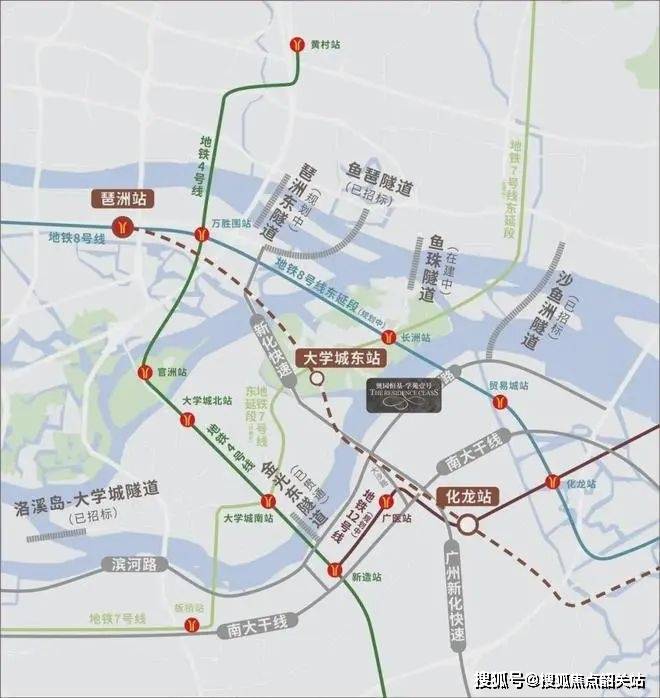 地铁:临近地铁8号线东延段(在建),两站直达琶洲;未来还将衔接19号线(规划中),形成四轨环绕格局。