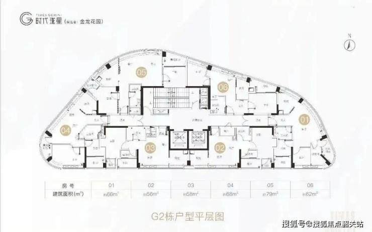 G1栋:蝶形设计,两梯六户,提供99-106平三房户型,适合追求宽敞生活空间的家庭。