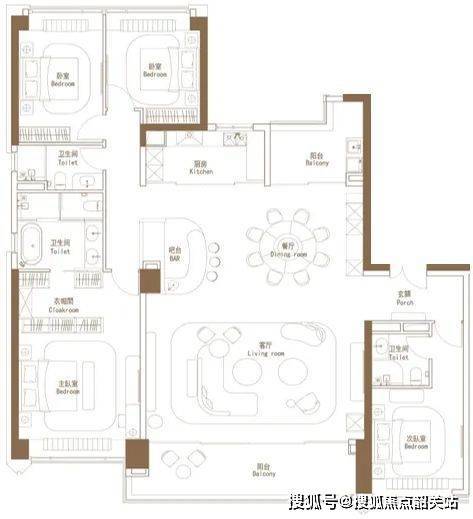 四间卧室布局合理,主卧空间宽敞豪华,配备独立卫生间和衣帽间,彰显主人的尊贵地位。次卧和儿童房也都空间开阔,可根据家庭成员的喜好进行个性化布置,满足不同需求。整体户型设计注重细节与品质,为追求高品质生活的家庭提供了理想的居住空间。
