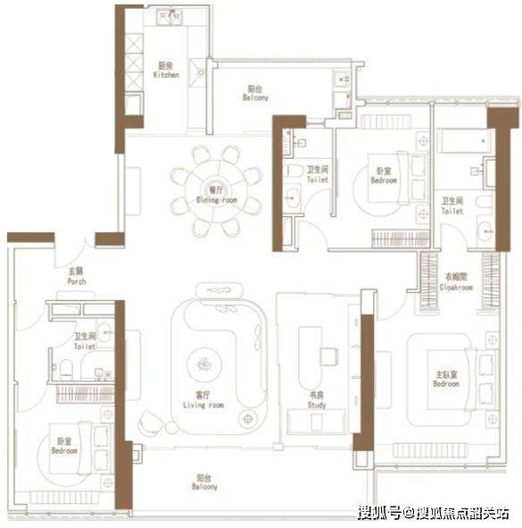 开放式江景书房是一大亮点,在这里,业主可以在江景的陪伴下阅读、工作,享受宁静而惬意的时光。江景与书香相互交融,营造出独特的氛围。奢阔主卧套房空间宽敞,配备独立的卫生间和衣帽间,为主人提供了私密而舒适的休息空间。卫生间内可设置双台盆、浴缸等设施,满足主人的高品质生活需求。整体户型动静分区明确,休息区与活动区互不干扰,为家庭打造了一个舒适的居住环境。