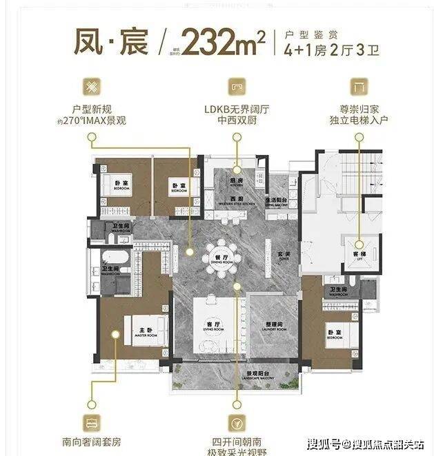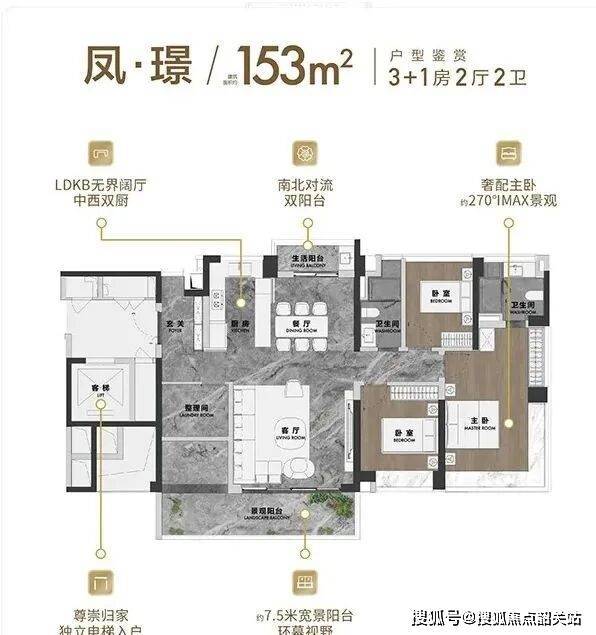 户型布局与空间利用细节是顺控凤起观澜产品力的核心体现,尤其是其主推的约153至232平方米大平层产品。这些户型在设计上强调了空间的极致利用率,数据显示其户型实用率约为99%,这在高层住宅中是一个相当突出的数值,意味着购房者所支付的面积几乎全部转化为可使用的室内空间。以约18米的南向采光面为例,这一设计确保了主要生活空间如客厅及卧室能够获得充足的日照,提升了室内的明亮度与舒适度。此外,约270度的IMAX无界景观视野,打破了传统住宅的视线局限,将窗外的城市景观或园林景色引入室内。专梯专户的配置则进一步保障了居住的私密性与归家的尊崇感,无论是三代同堂的大家庭结构,还是对空间尺度有较高要求的高端人士,都能在这些户型中找到符合其生活习惯的空间布局,避免了面积的浪费与功能的冗余。