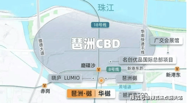 琶洲,早已不是传统意义上的“会展板块”,而是广州数字经济与总部经济双轮驱动的核心引擎。这里汇聚了腾讯、阿里巴巴、唯品会等数百家头部企业,是粤港澳大湾区最具活力与前景的产业高地之一。而琶洲樾·华樾,正落子于琶洲西区核心腹地,南望黄埔涌一线江景,北接琶洲总部天际线,真正实现“外揽江湖胜景,内拥都会繁华”的双重生活维度。