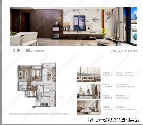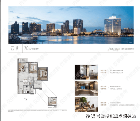 主力户型聚焦功能实用与空间效率。建面约76㎡“沁境”三房,采用紧凑型布局,实现三房两厅一卫,适合年轻首置家庭;建面约88㎡“宸境”则升级为双卫设计,主卧套房配置独立卫浴,提升私密性与便利性;建面约137㎡“逸境”大平层,四房双卫格局,LDK一体化公区连接南向阳台,视野开阔,满足改善型家庭对空间尺度与功能分区的更高要求。所有户型均注重动线流畅与采光通风,部分单位可享江景或园景资源,兼顾实用性与居住愉悦感。