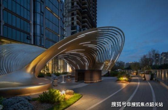 在建筑层面,保利天瓒由扎哈·哈迪德建筑设计事务所担纲设计,成为东平河畔极具辨识度的艺术建筑。项目以流体力学为灵感,运用大尺度曲面立面、三维玻璃幕墙与定制金属系统,塑造出极具未来感与雕塑感的建筑形态。整体建筑线条舒展流畅,与江岸景观形成动态呼应,展现出现代滨水建筑的国际表达。同时,项目引入高标准夜景照明体系,使建筑在昼夜之间均具标志性表现力,成为东平河沿线极具识别度的城市封面。