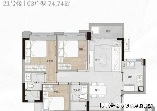 合景誉山国际的户型设计,堪称“刚需教科书”——小面积、多房间、高实用。