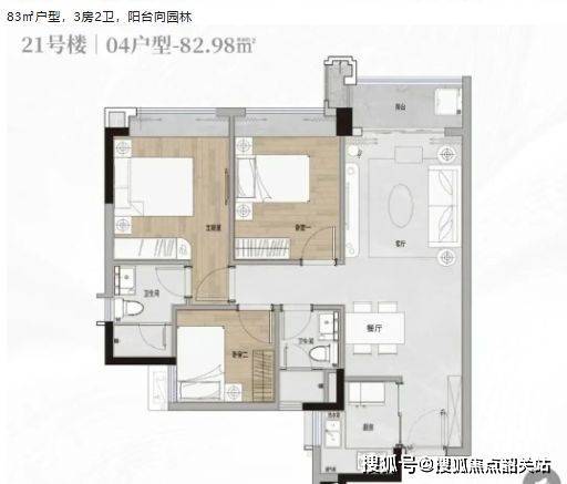 83㎡阳台朝园林,88㎡东南向采光更佳;
