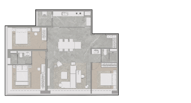 产品面积:B地块公寓为86-225㎡平层户型,C地块公寓为105-141㎡平层户型,E地块则是425㎡纯粹的大平层产品,F地块公寓则为171-225㎡平层户型