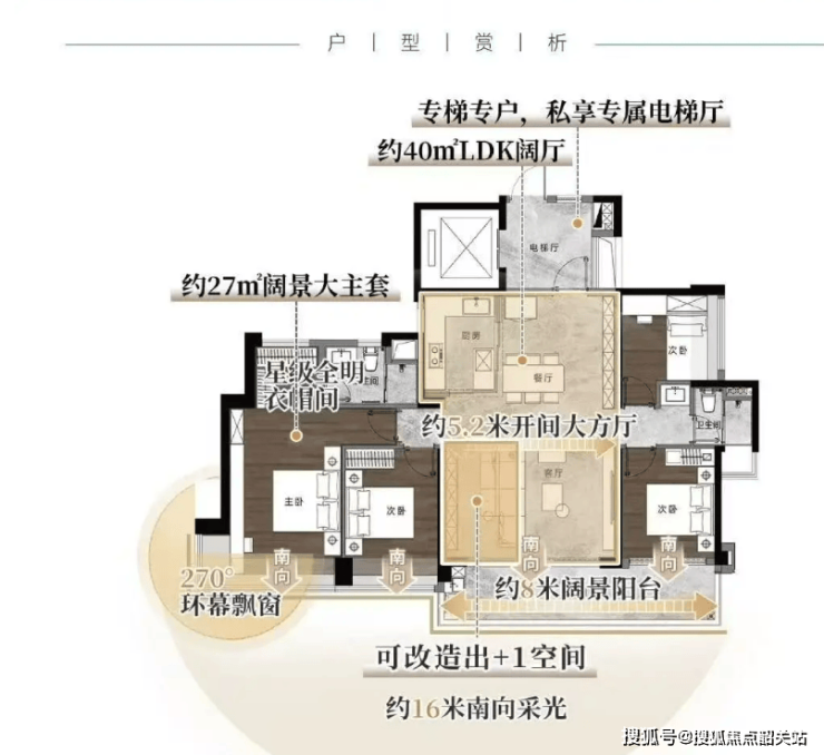 实用率约 120%,终极改善大平层,专梯专户、私梯入户。