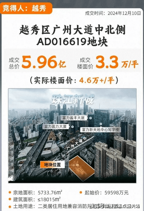 越秀东山云起位于越秀区广州大道中,紧邻中山一立交西侧,与珠江新城仅一路之隔,真正实现“左珠城、右东山”的双核占位——既享CBD现代繁华,又承百年东山文化气韵。地块于2024年12月由越秀地产以5.96亿元竞得,扣除配建后楼面价约4.6万元/㎡,是越秀区自2020年以来首次推出的新住宅用地,稀缺性不言而喻。