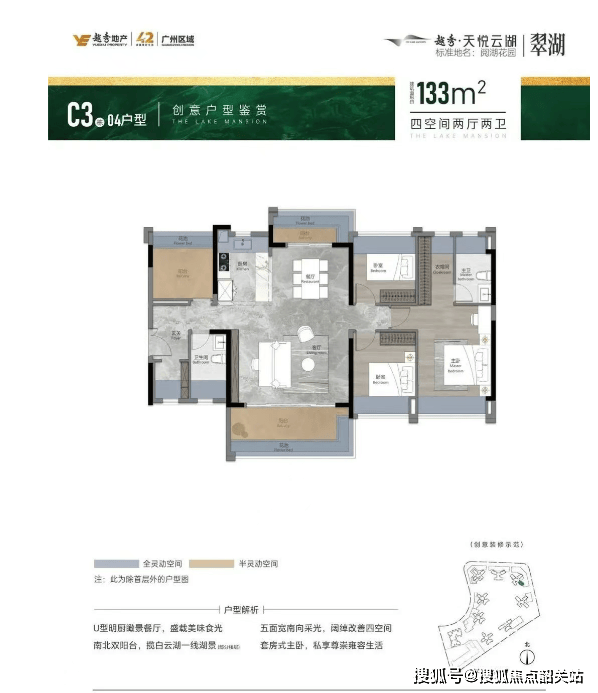 在售美术空间户型方面,【越秀·天悦云湖】提供了多种创新户型设计,面积涵盖84㎡至133㎡,适合不同需求的家庭。每个户型都经过精心设计,力求最大化利用空间,提高得房率。例如,部分户型设有6.8米观景阳台,让业主可以在家中尽情欣赏四季风景;而豪华主卧套房则配备了独立衣帽间,彰显尊贵身份。这些用心的设计,不仅提高了居住舒适度,也为业主提供了更多个性化的选择。