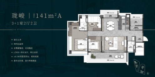 部分户型采用更大面宽与合理进深比例,使客厅、餐厅形成更具延展感的生活场景。主卧普遍配置套房式设计,强化居住私密性与使用舒适度。部分户型在功能布局上进一步强化收纳与多功能空间,适应家庭结构变化带来的长期居住需求。