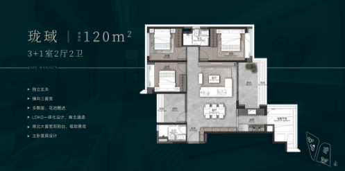 广州地铁珑璟台主力产品为建面约120—195㎡的高层改善型住宅,整体定位清晰,覆盖高端家庭的主流改善需求。户型设计强调空间效率与舒适尺度的平衡,注重南向采光、通风对流及公共空间的完整性。
