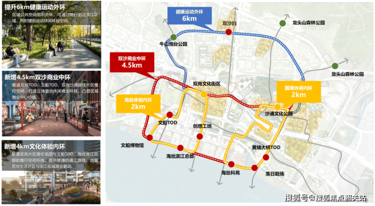 人文城市:构建串联TOD商业、文化街区、都市服务、生态社区等重点项目的漫游活力轴,重点塑造两大综合商业地标及两大休闲文化街区。
